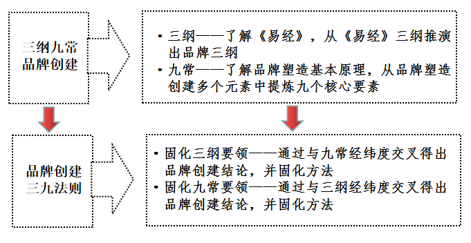 一直以来,白酒行业的品牌发展就是个相对畸形的状态。大大小小几万个品牌,企业规模从几十万到几十亿的都有。既有传承几十年、几百年的老品牌,也有横空出世的新品牌。百年品牌有做到消沉、一落千丈的,新生品牌也有厚积薄发、后来居上的。仔细回首记忆中数不清的白酒品牌,很多品牌既没有品牌架构也没有品牌内涵,既不能清楚表达销售主张也不能有效传递产品价值,究其根本,皆因对品牌创建缺乏系统梳理。白酒行业在经历了渠道制胜、终端为王的喧嚣后,已经进入品牌制胜时代。本章就为您介绍三纲九常品牌创建法,如图3-1所示。