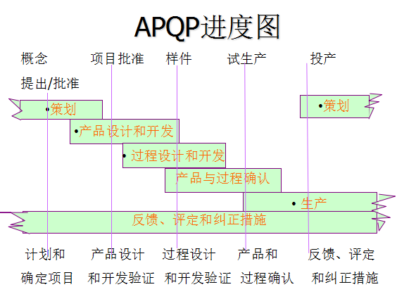 APQP=Advanced Product Quality Planning,产品质量先期策划。品质是制造出来的,更是设计出来的,一个新项目的前期设计至关重要,因此产品质量先期策划必须做好,否则后续变更、异常、投诉会接连不断。APQP实际就是一个项目管理,虽然从前期的概念设计、立项、设计、验证、试产、到最后量产与交货,都是APQP要管控的,但其侧重点则在于量产前的设计、验证与评审。APQP是一种系统性解决问题的方法,不仅涉及人机料法环,各部门方方面面,同时也强调各动作同步进行。