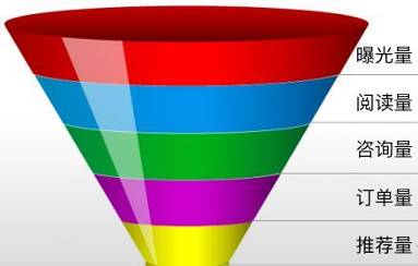 在微信运营里,公众号也有营销漏斗一样的关系,我们前面讲的流量、转化量及销量,对自媒体来讲,通常100个阅读量里可能会产生一个关注量。我们把这个叫作漏斗模型。