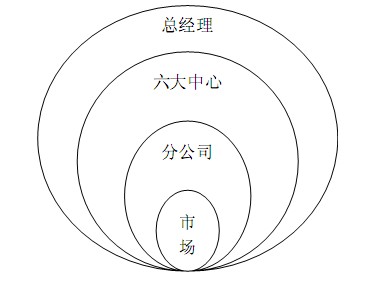 图8-8总经理、六大中心、分公司以及市场之间的层次与关系