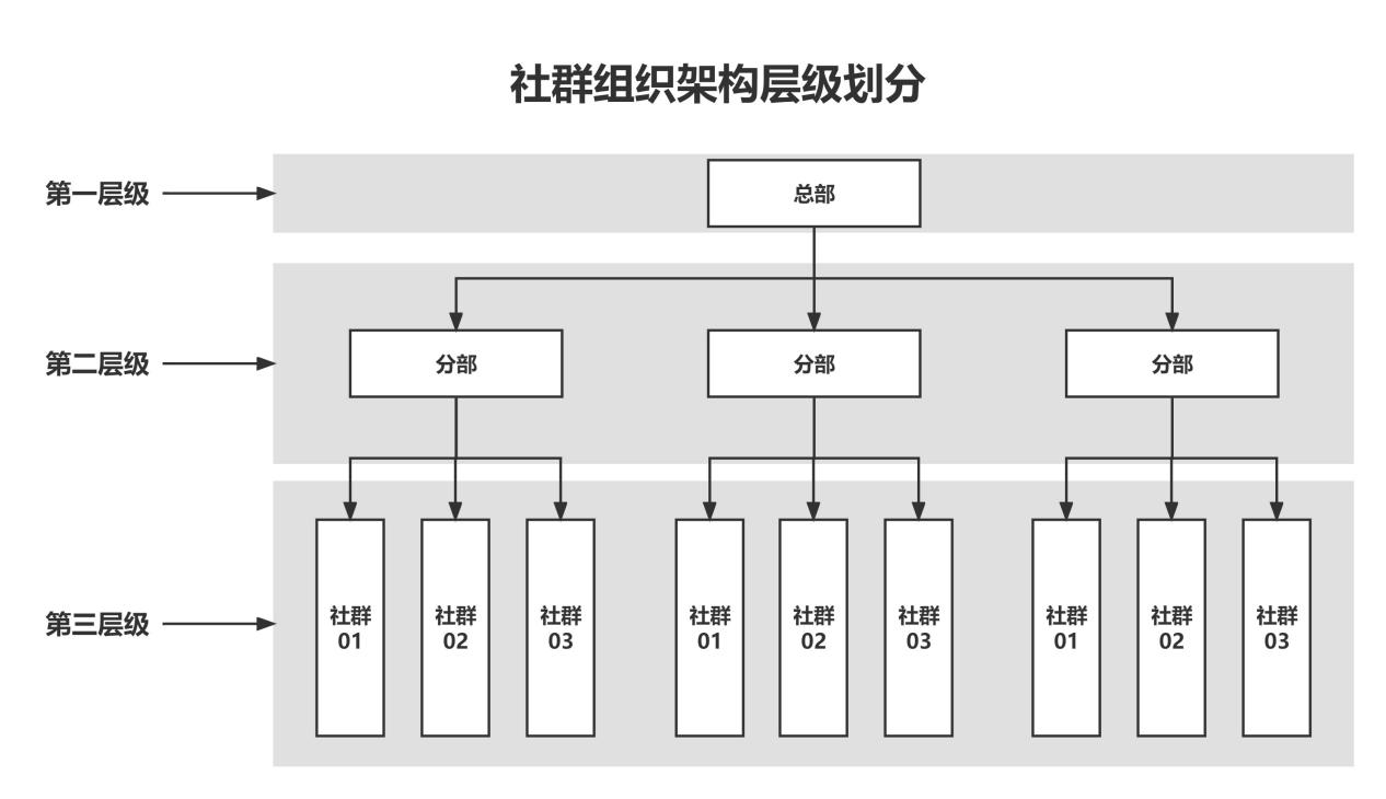 三层级的组织架构划分,在具体职能上可以根据不同的行业、企业业务需求及社群类型等进行适当的调整。