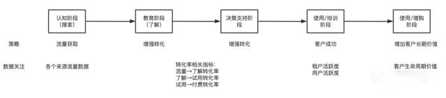 以营收为例,我们可以结合【SaaS用户旅程】及【核心指标】拆解到各个环节,如图4-6所示。