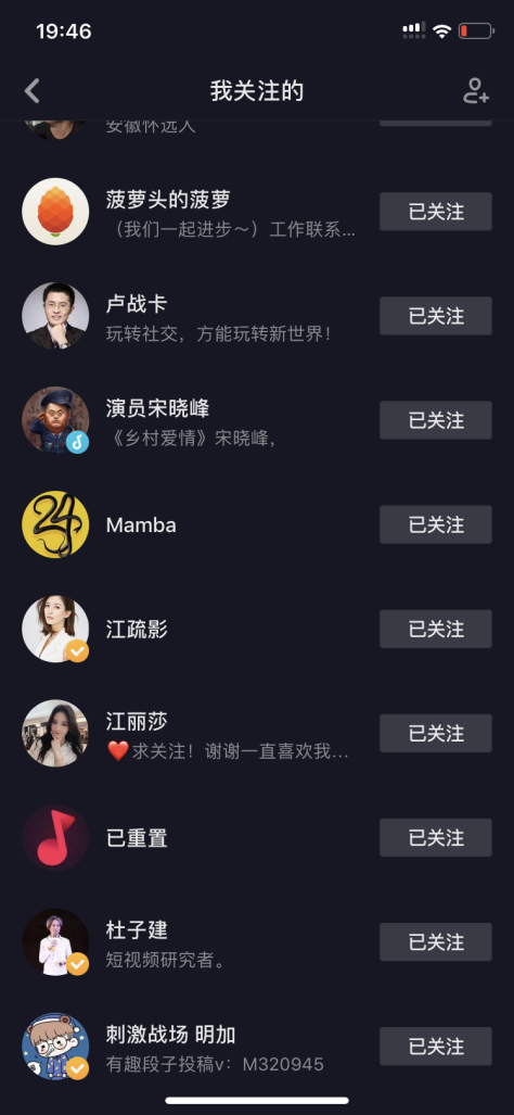 图4-5中的“好物精选”(菠萝头的菠萝)的账号,就设计了一个独特的橘黄色的图形符号,作为头像。而更多的账号,选择使用个人照片做头像。图中“刺激战场明加”的账号,则用了一个动漫人物作为自己的头像。“杜子建”就是个人的写真。