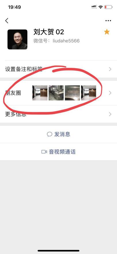 抖音背景墙的位置,有点类似微信朋友圈的头图。不过,抖音背景墙的重要性,要比微信朋友圈头图的重要性强。因为微信朋友圈的头图(图4-8红圈部分)是点开微信账号的头像后,再点击朋友圈(图4-9红圈处),才能看到。而抖音的背景墙,在进入抖音账号后,直接就能看到。