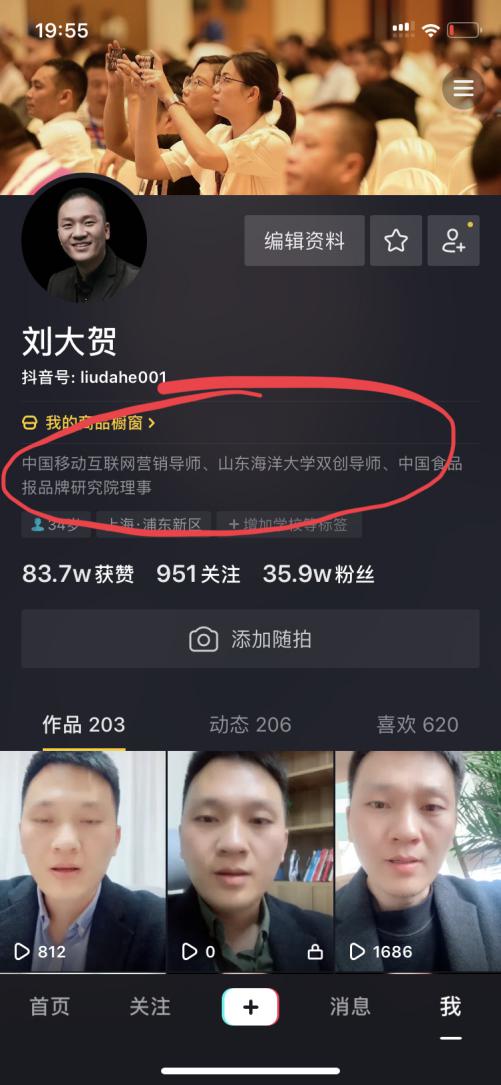 不出名时要为自己增加信任背书,要给自己提炼头衔和卖点。只要抖音允许,像“非物质文化遗产”“驰名商标”等能够增加个人及产品权威性的内容,都尽量打上。个性签名能够输入的字符,总计最多40个字,内容上建议包含“头衔、信任背书、联系方式”三项。