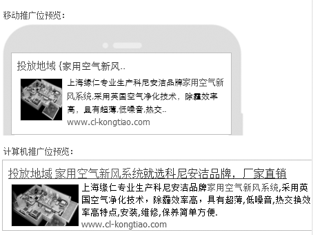 “显示URL”是指在广告中给客户看的网址,不管是PC端还是移动端,一般都设置成企业官网网址,图3-41就是全部设置好后预览到的广告效果。