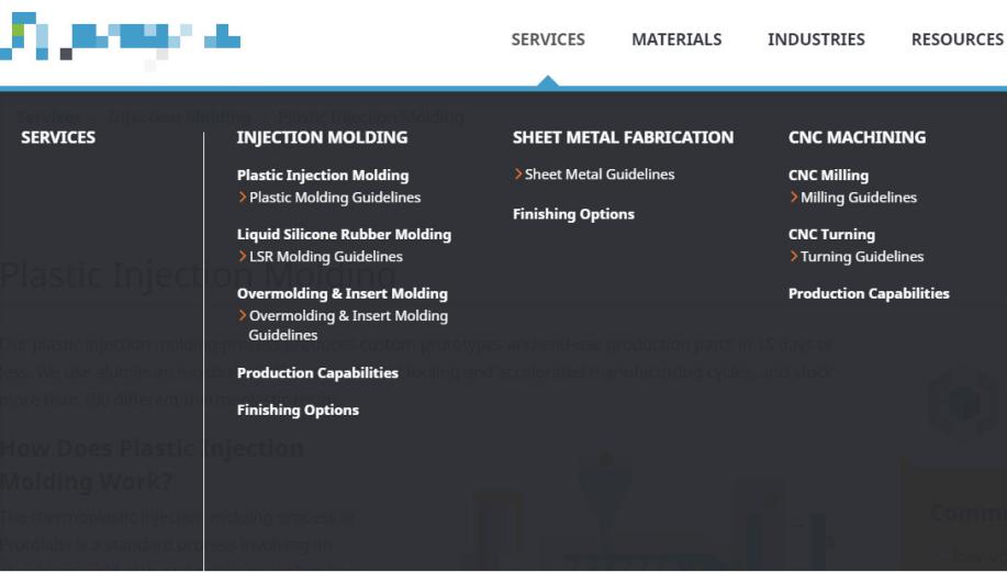 比如下面这三家国外同行,同样是做注塑件的,但侧重点明显各有不同。