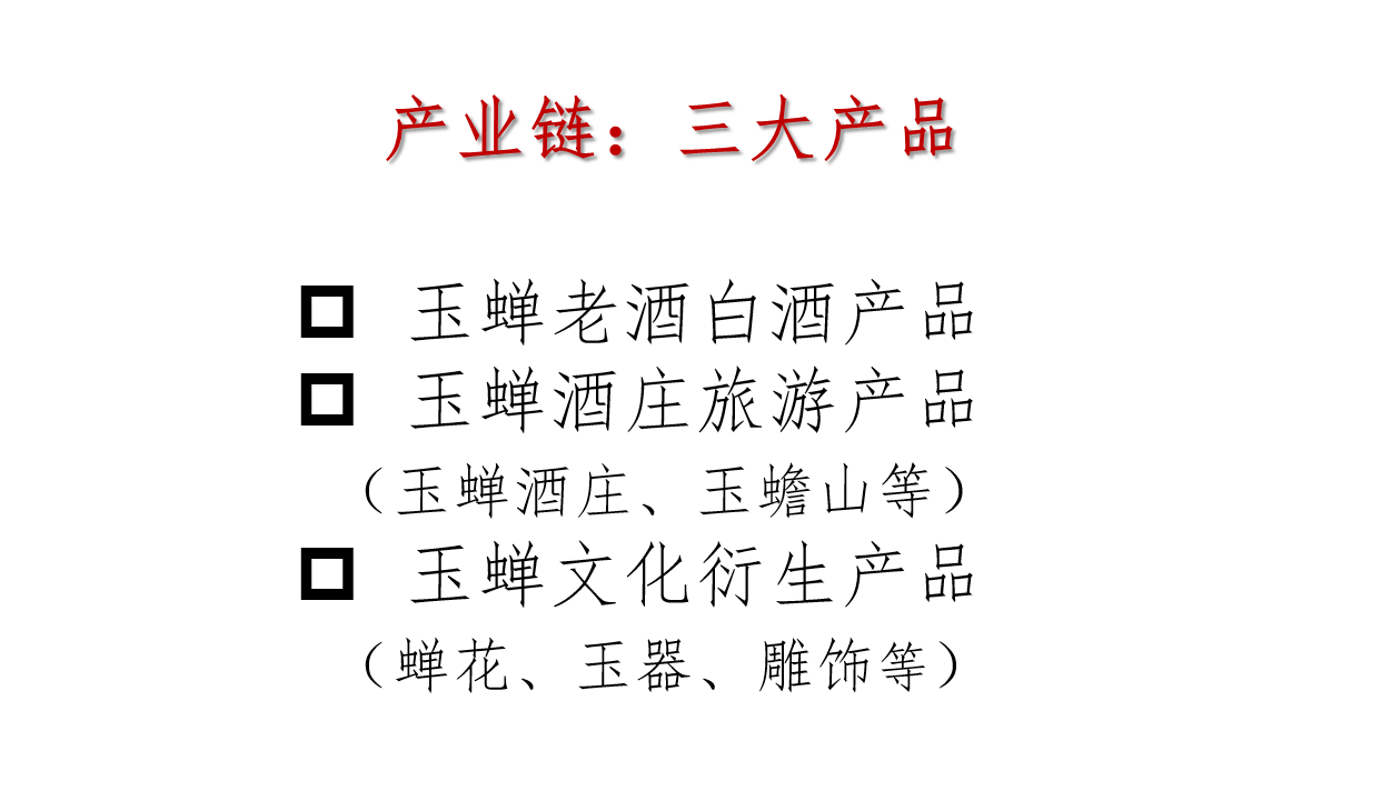 玉蝉老酒的景区生态概括为三宝六景,三宝分别是一宝酿酒龙脉、二宝两江河口,三宝玉蝉文化。