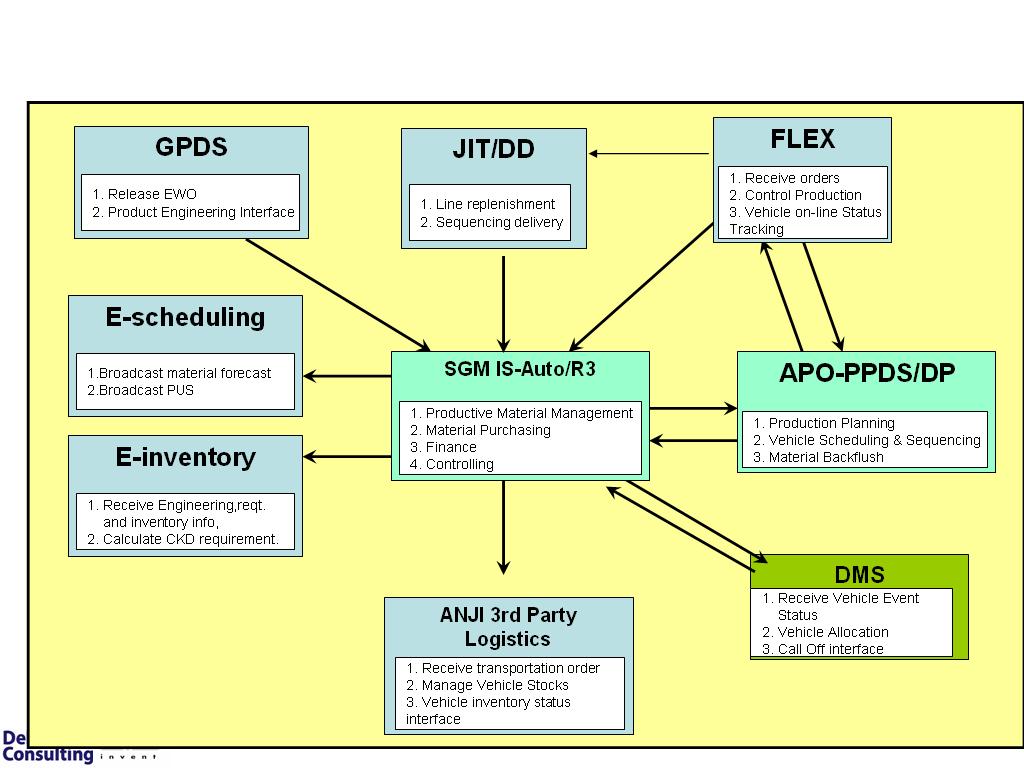 通用汽车的信息系统的核心是SAP的IS-Auto系统和APO(高级计划及优化)系统,其中IS-Auto是SAP针对汽车行业推出的建立在SAP的R/3基础之上的加强模块。