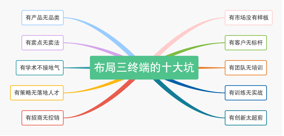 对绝大多数转型或新拓展进入第三终端市场的企业而言,踩坑不可避免,只是学费交多少,需要多长时间来学习的问题。布局三终端有以下十大坑,如图1-5所示。
