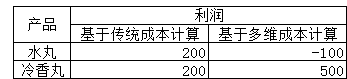 传统成本计算下,认为水丸和冷香丸的赢利能力大小相同。