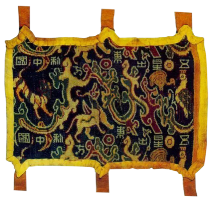 还有一个传说:汉宣帝派赵充国大将军取得讨羌大捷时,只见天现祥瑞“五星连珠”,于是命令将“五星出东方利中国”绣在护膊的织锦上,并埋下数之不尽的宝藏以此纪念。在现代政治意义上,“五星出东方利中国”也与中华人民共和国国旗五星红旗有着惊人的巧合。
