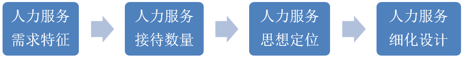 在人力服务产能的设计中,首先要掌握人力服务的需求特征,而后要掌握人力服务接待的客数,然后定位人力服务的设计思想和框架,最后展开细化设计。