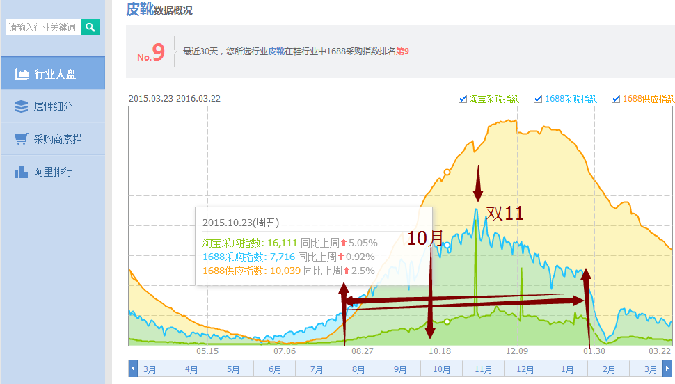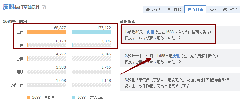 对于皮靴这款产品,若要知道几月是它的淡季旺季,我可以通过阿里指数得出以下数据:8月份开始是旺季,采购商淘宝类居多,9月至12月采购商与批发商差不多,此时我们应该依据市场变化来变换款式和价格,来应对市场的变化,以让自己立于不败之地!