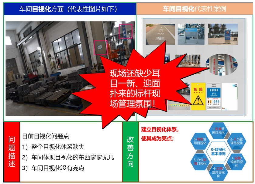 (6)现场目视化未在现场呈现,缺乏耳目一新的亮点;