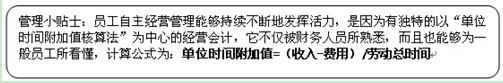 单位时间附加值核算的另一个意义体现在为了维持生计,各个经营单元至少要保证单位时间的附加值高于员工每小时的平均工资,因为在计算费用时,劳务费没有计入,而是以总的劳动时间替代。将每小时平均工资和单位时间附加值相比,便可知经营活动中应坚持的底线。