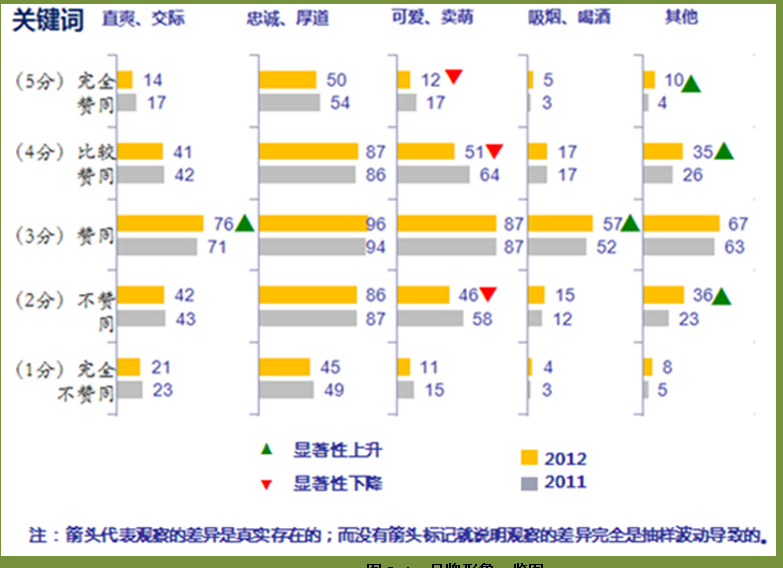 如果是新品牌,品牌定位图,主要是对重要竞争对手的分析;如果是已有品牌,则侧重于对自有品牌的分析。在品牌特质的分析上,最重要的一个辅助工具称为“5点量表”,即将品牌可能具备的某特质用5分的方式,让受调查者根据品牌印象打分,特质越明显的分数越高,但是这些备选的品牌特质从哪里来呢?