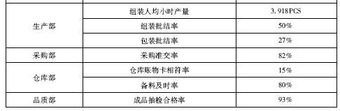 :而且我们确定考核数据的时候,只考虑现阶段的关键数据。比如对于采购部门而言,他们的工作指标肯定不止采购准交率这一个,但现阶段我们只考核采购准交率,因为采购准交率直接跟产量相关,那些跟产量无关的其他数据,我们暂时先不考核。这样管理人员也能够把注意力全部集中到所要达成的事情上来,这样的考核才有意义。