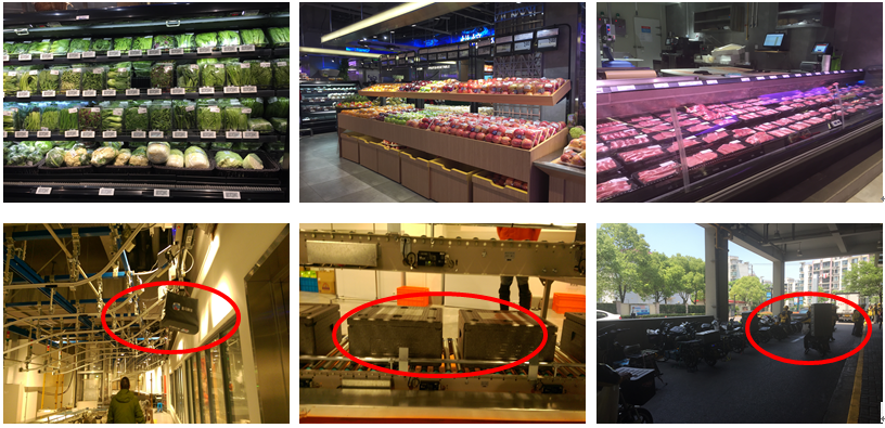 如图3-6所示,盒马鲜生的店内传送系统,与袋子、标准箱、电动车一起组成的标准化的无缝衔接系统,这是内部具有巨大效率价值的点,也是降低包装及配送成本的点。这值得我们O2O从业者借鉴,别小看那些包装盒、包装袋、泡沫箱和电动车!