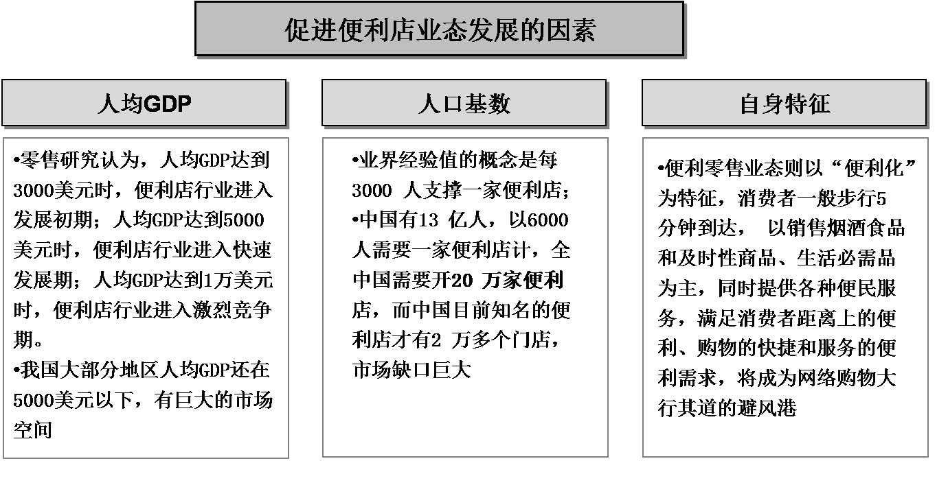 根据国际经验,当一个地区人均GDP达到3000美元时,便利商店开始出现,达到6000美元时,便利店开始进入高速发展阶段。