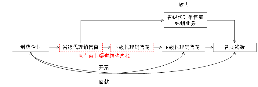 也有一些区域配送商由于在成为指定配送商业前本身有一部分纯销资源,也有一些销售人员,这类区域配送商较少。但这类区域配送商业存活的可能性较高,他们可以凭借区域政府资源或者医疗机构资源放大自己的纯销资源,成为区域的纯销商业,叫配送商业。