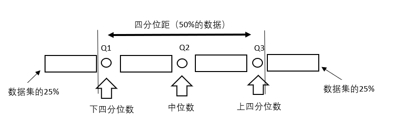 四分位距=上四分位数-下四分位数。它是50%中间值形成的一个间距。