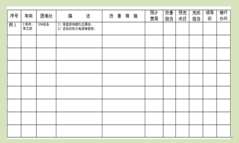 上一阶段活动结束后,还有一些难点问题或者某些慢性问题(发生源和一些不易解决的困难源等)尚未解决。仔细分析这些问题,可以看出解决不了的原因主要是一些客观原因。比如说,需要投入较多的资金但又没有预算,一时还找不到好的对策办法,或者对策(技术)能力不足等。这类问题是本阶段活动的改善重点。