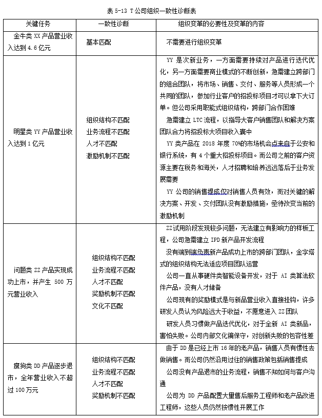 纵观T公司,之所以2013年至2017年业绩长虹,是因为正好赶上了XX类产品如日中天的好时机。可时过境迁,当2018年市场对XX产品需求下降时,无论是核心业务的XX产品,还是成长业务和新兴业务的YY产品和ZZ产品,整个组织是一套人马按照整齐划一的管理模式,带着过往经营XX产品的巨大组织惯性往前走。