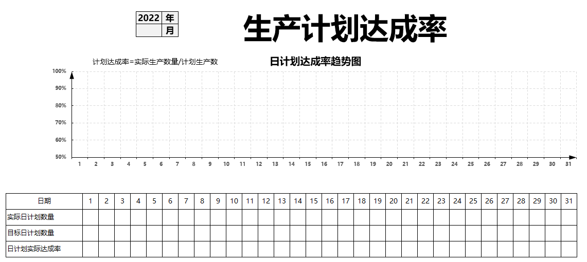 公式是:计划达成率=实际生产数量/计划生产数*100%