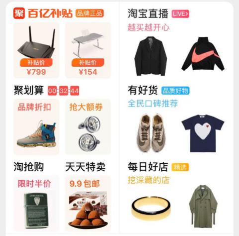 活动专区分类的特点是推荐的是个性化的分类或者活动。在前端返回推荐结果时,会返回多个分别属于不同分类的商品列表,那么按照商品列表由高到低只取分类返回即可。这也能解释手机淘宝活动专区展示的不同品类的商品,但点击之后并没有跳转到商品,而是到了分类的活动页面。如图4–6所示。