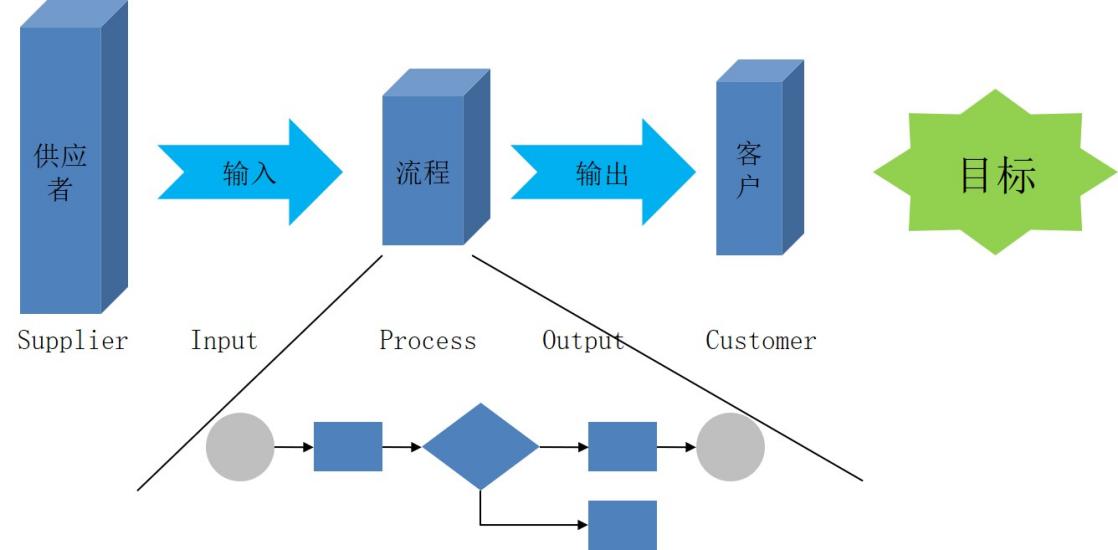 在传统的观念中,关于流程的描述,以美国质量管理大师戴明(William Edwards Deming,威廉·爱德华兹·戴明)提出的SIPOC模型影响至深。如下图所示:
