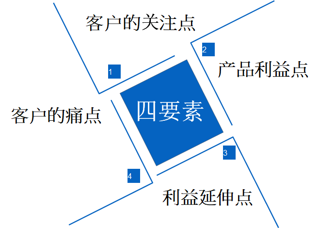 介绍产品呈现的价值需要注意四个关键点:客户的关注点、产品利益点、利益延伸点、客户的痛点,如图9-1所示。