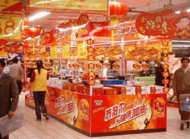 新春期间,联合金龙鱼,在全国范围内的国际性卖场以及重点区域卖场展开“好锅好油,健康美食——苏泊尔为健康加油”的大型联合品牌推广活动。(如图4-8所示)、(如图4-9所示)。