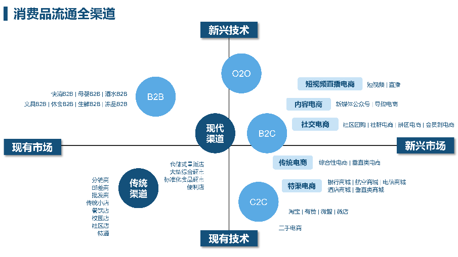 《新经销》曾经做过一个统计,用新旧技术和新老市场来划分,我们结构性地总结出了今天消费品行业的渠道增加数量,上千种都不止!
